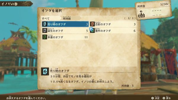 ・買い時のオフダ:お店でモノを買ったり、装備を生産・強化する値段が安くなる
