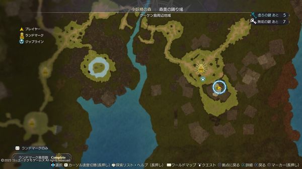 「エルダーフェアリー」はクーケン島周辺地域・小妖精の森「切り株のステージ」のランドマークから少し南東の岩で囲まれた場所に出現。