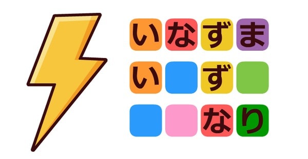 ■ヒント2『右の2つのイラストから一番上の4文字は「い・な・ず・ま」であることが確定します。